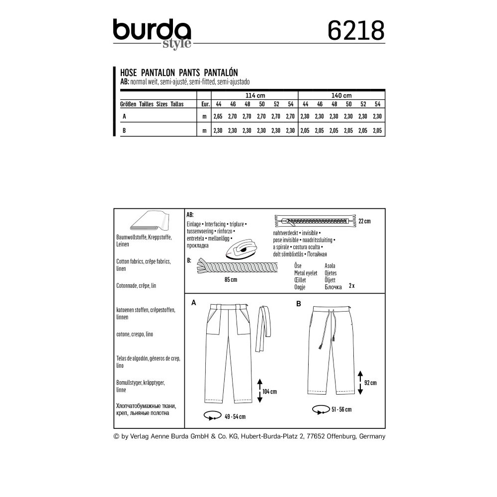 Střih Burda číslo 6218 letní kalhoty, lněné kalhoty pro plnoštíhlé