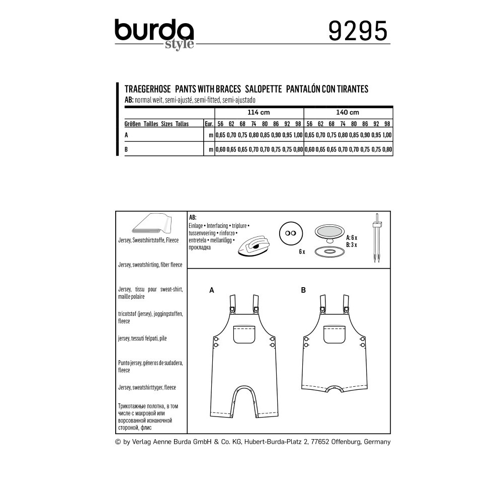 Střih Burda číslo 9295 dětské laclové kalhoty