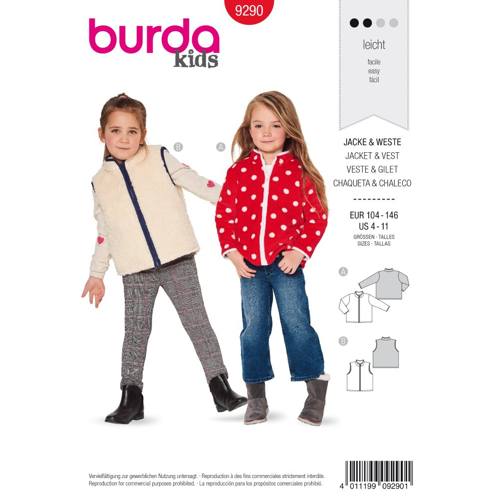 Střih Burda číslo 9290 dětská bunda na zip, vesta