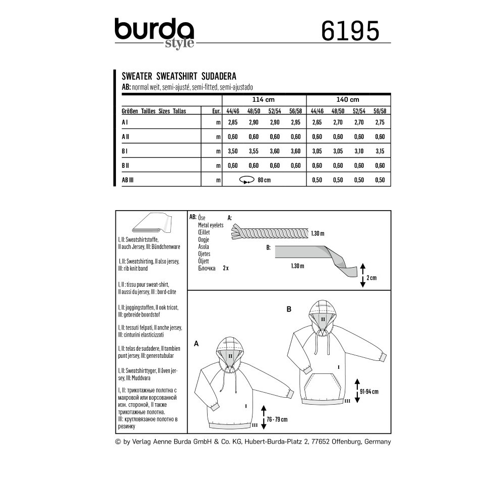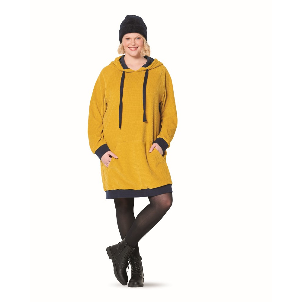 Střih Burda číslo 6195 mikina s kapucí, mikinové šaty pro plnoštíhlé
