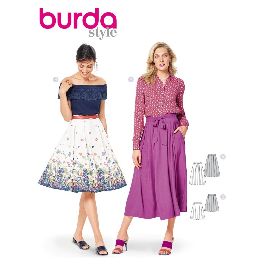 Střih Burda 6341, návod na šití: kolová sukně, kruhová sukně, široká sukně, dlouhá sukně