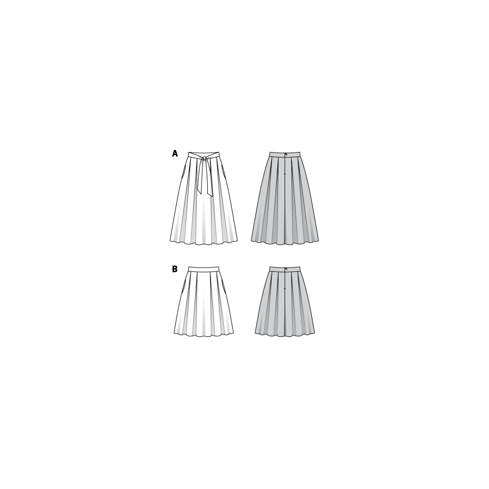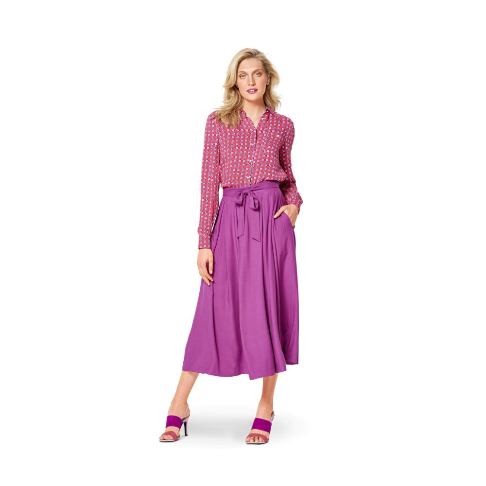 Střih Burda na kolovou sukni se sklady a kapsami v bočních švech a vázáním v pase.