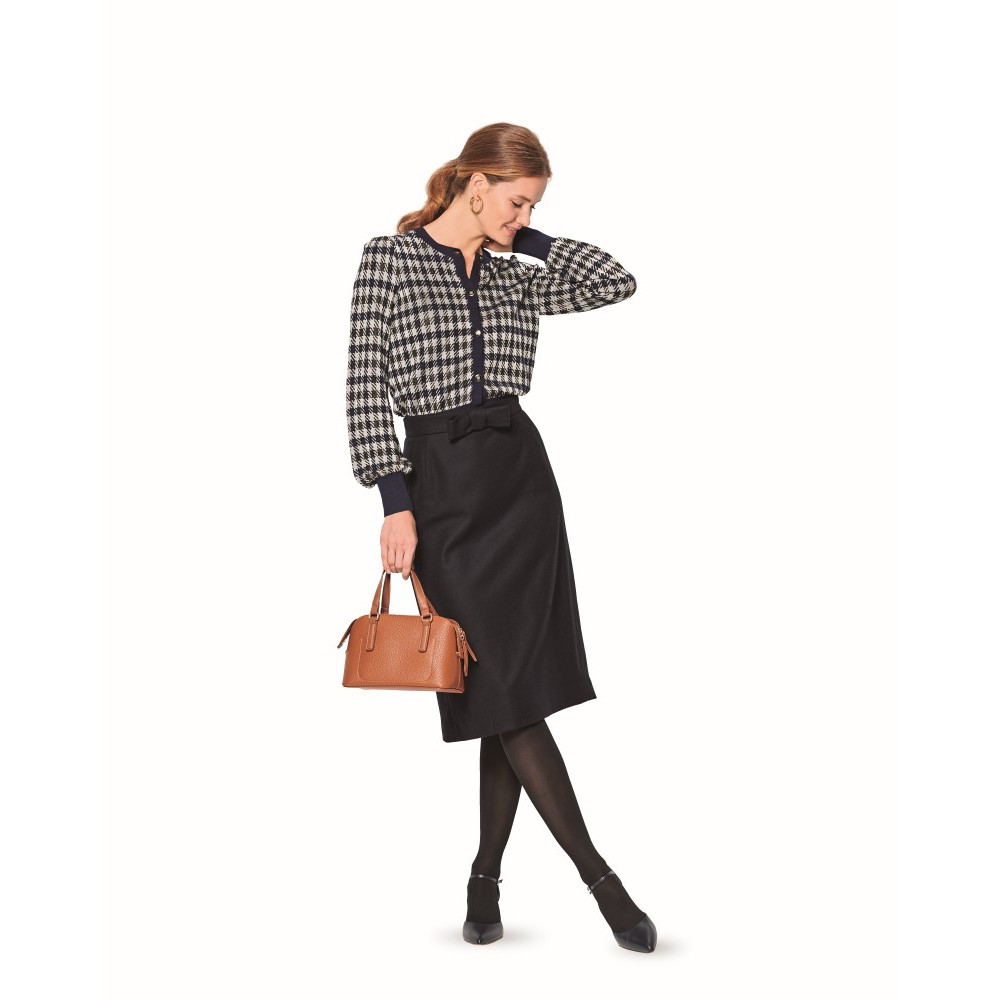 Střih ve velikostech EUR 34-44, úroveň obtížnosti šití: 2 (lehká), doporučené látky: vlněné látky, bavlna, žakár