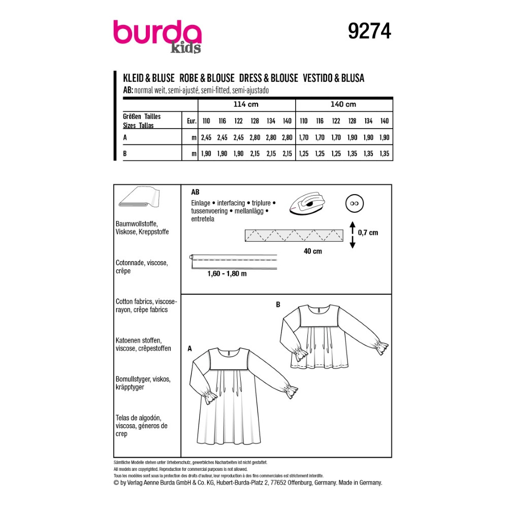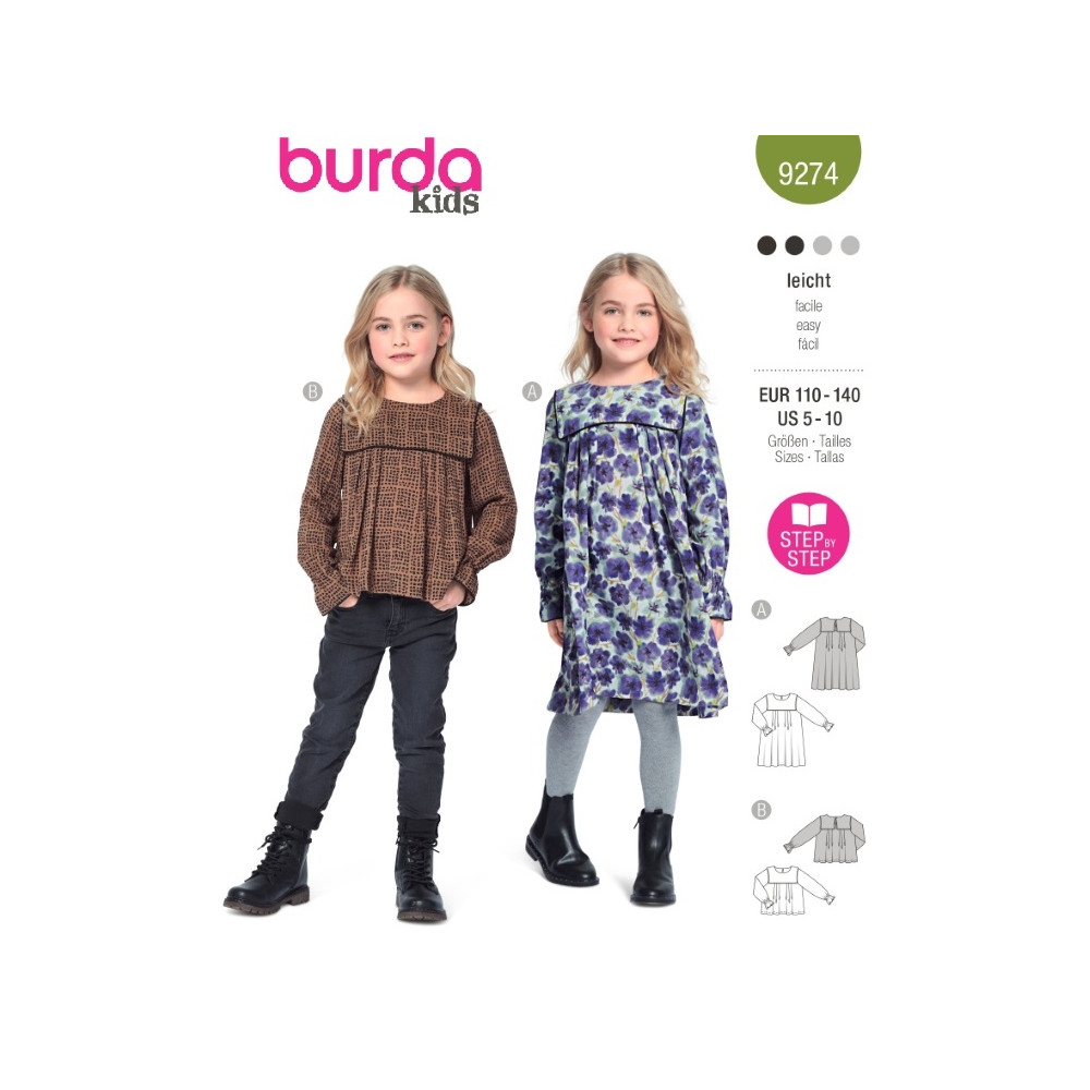 Střih Burda 9274, návod k šití: dětská halenka, halenkové šaty