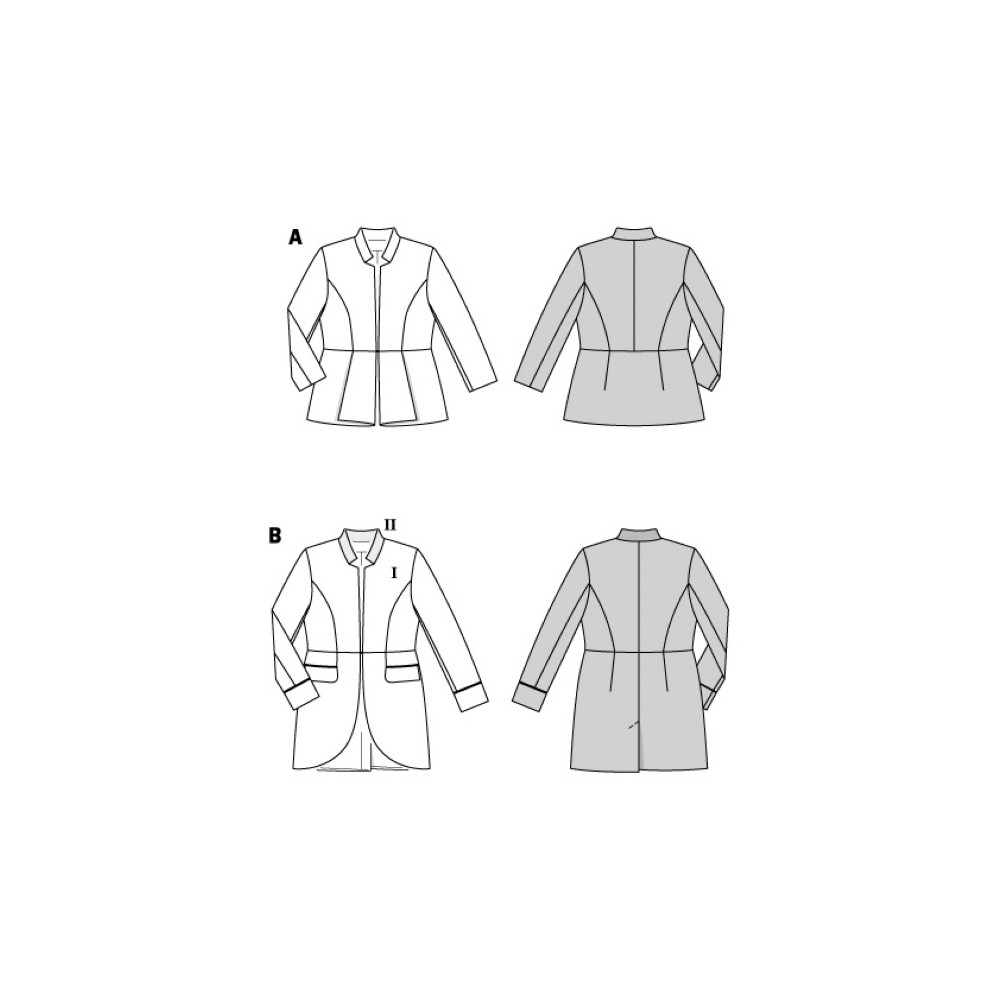 Střih Burda 6096, návod k šití: sako peplum pro plnoštíhlé dlouhé sako