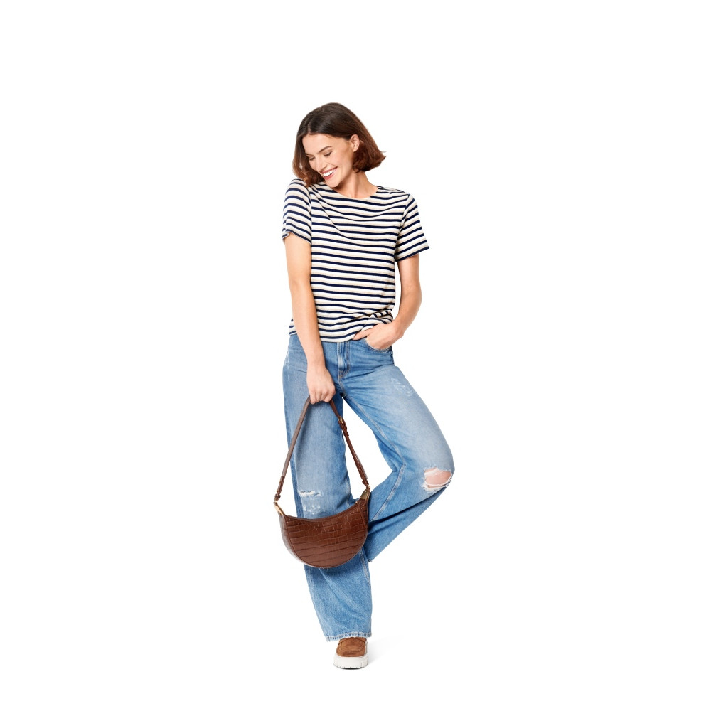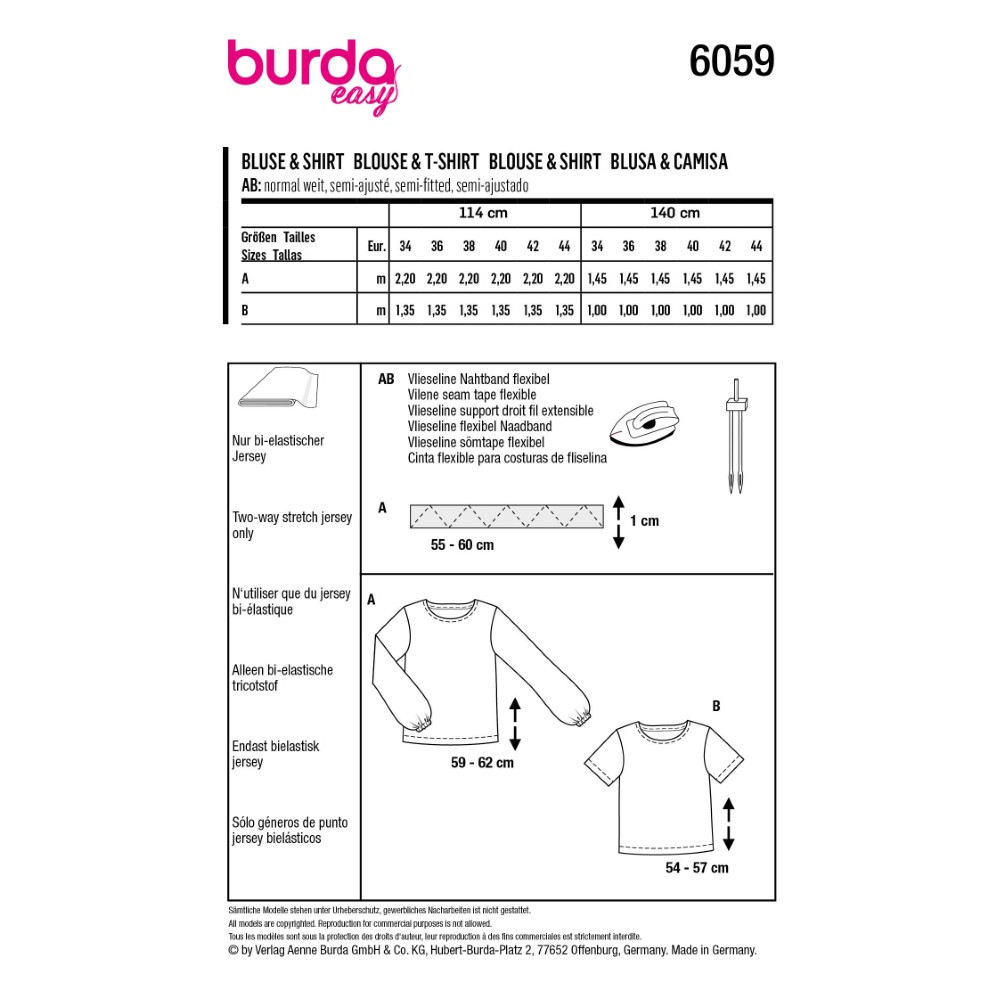 Střih ve velikostech EUR 34-44, úroveň obtížnosti šití: 1 velmi lehká info, doporučené látky: pouze bi-elastický žerzej