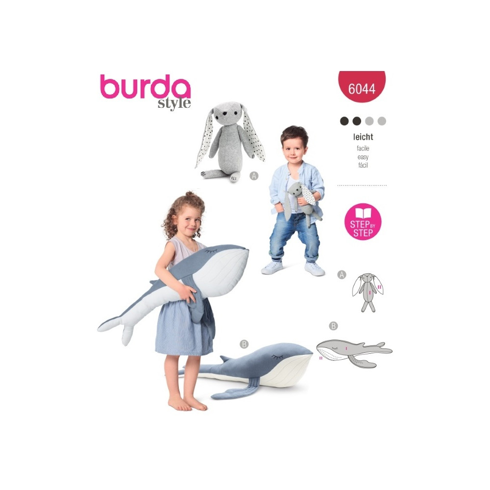 Střih Burda 6044, návod k šití: králíček, velryba, hračky, dekorace pro děti