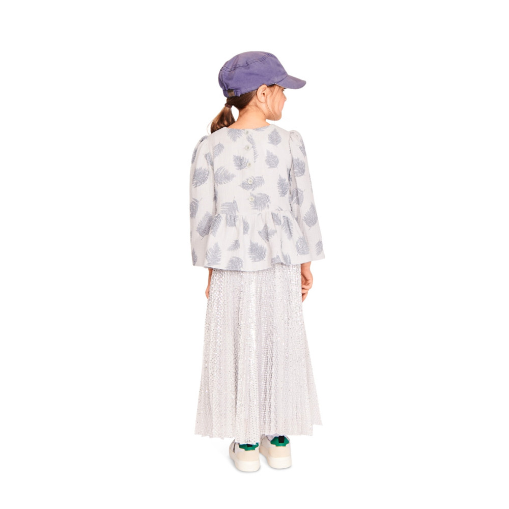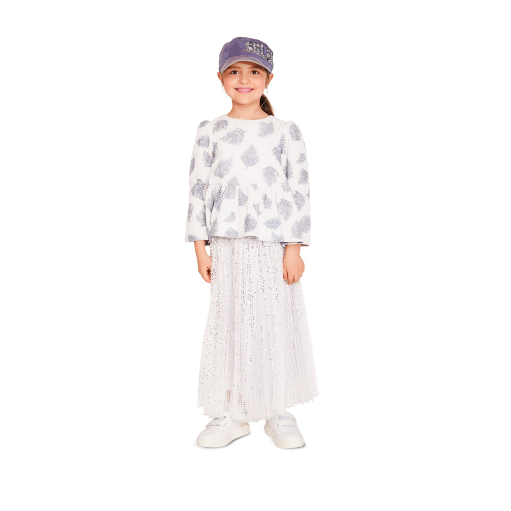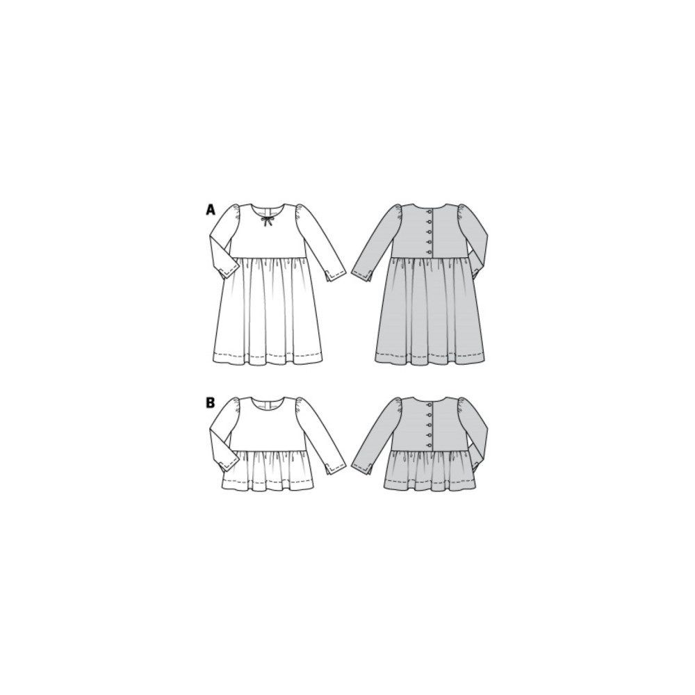 Střih ve velikostech EUR 104-146, úroveň obtížnosti šití: 2 (lehká), doporučené látky: bavlna, viskóza, krepové látky, směsové látky