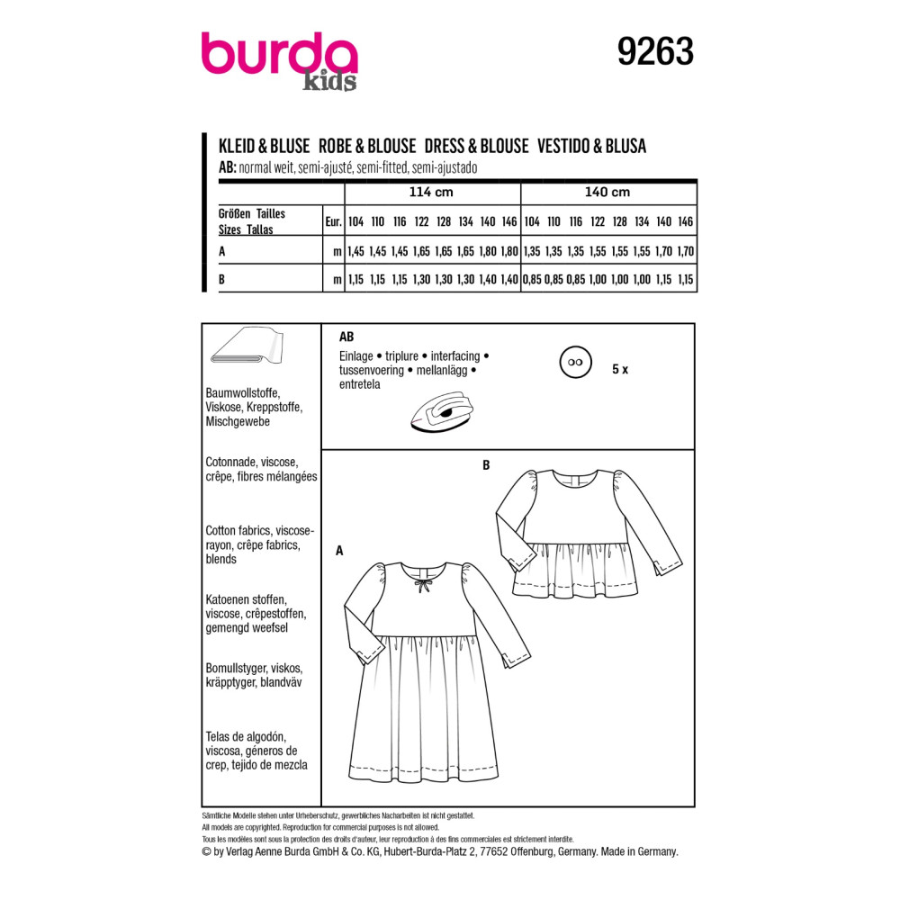 Střih Burda 9263, návod k šití: dívčí nabírané šaty a halenka