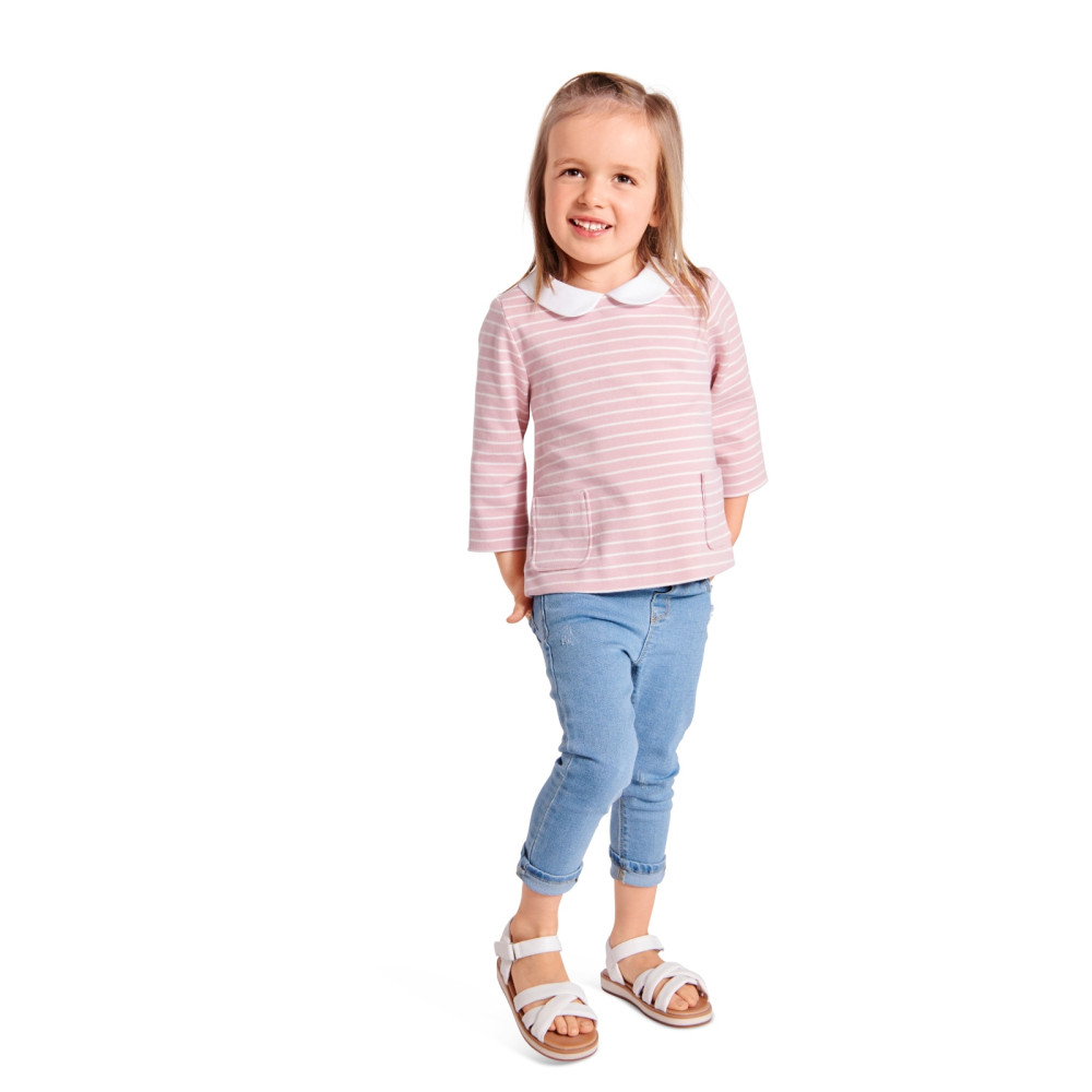 Střih ve velikostech EUR 98-128, úroveň obtížnosti šití: 2 (lehká), doporučené látky: žerzej