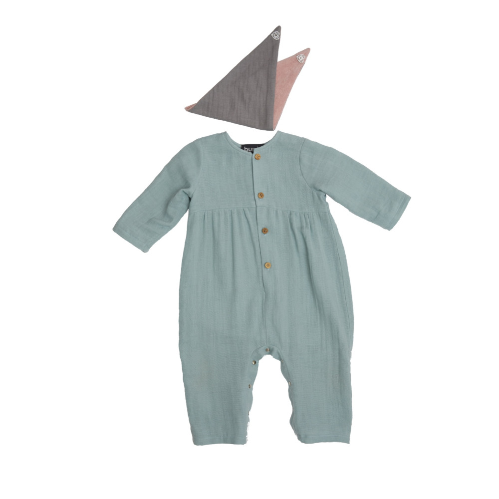 Střih Burda na overal se zapínáním na patentky na nohavicích a bryndáček