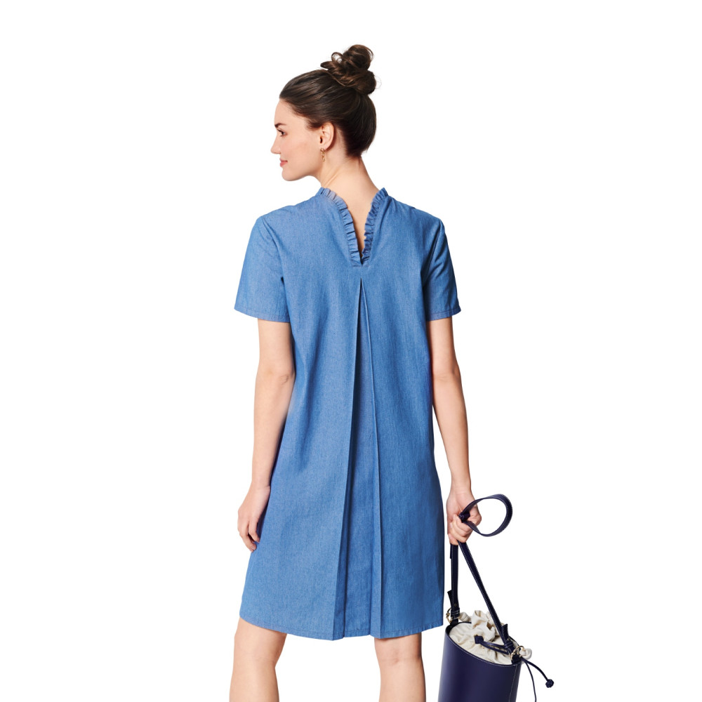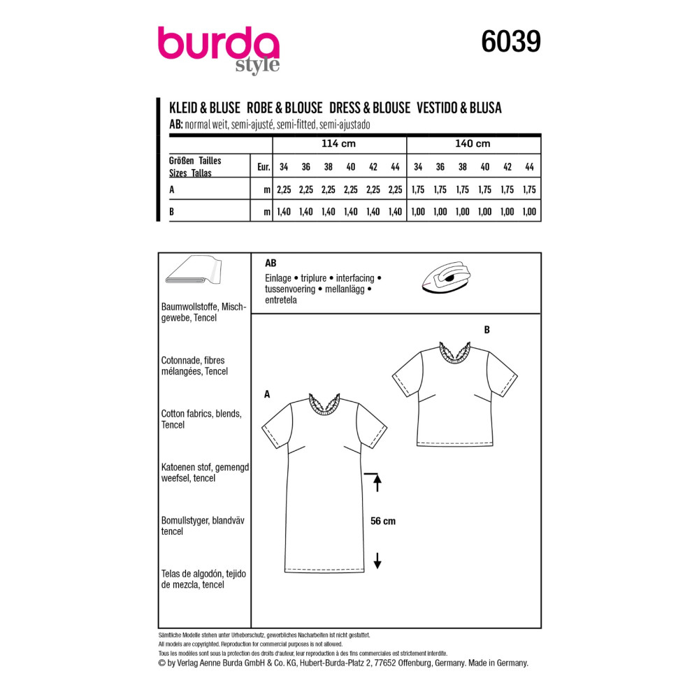Střih Burda 6039, návod k šití: rovné šaty se skladem na zádech, halenka