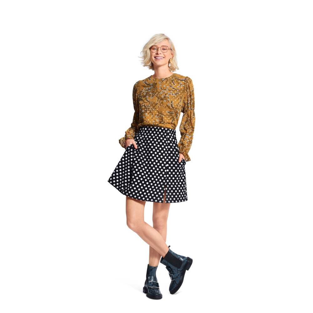 Střih ve velikostech EUR 34-48, úroveň obtížnosti šití: 1 velmi lehká info, doporučené látky: bavlna, směsové látky, krepové látky, viskóza