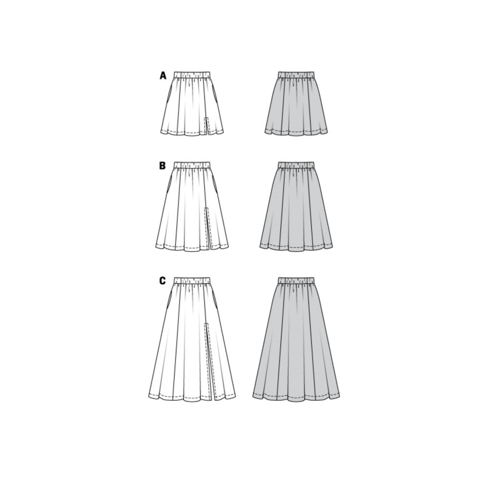 Střih Burda 6027, návod k šití: sukně s gumou v pase, dlouhá sukně