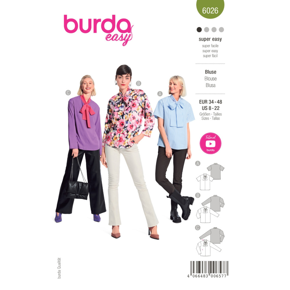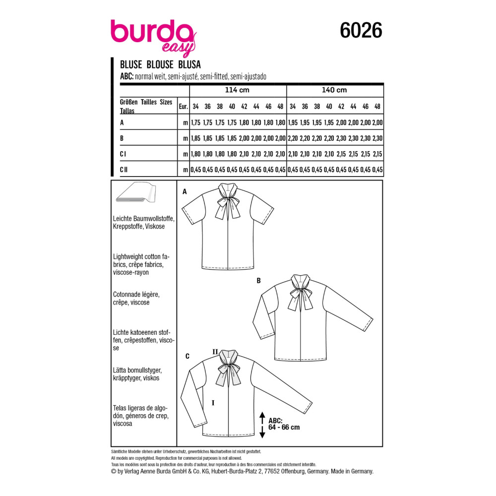Střih Burda 6026, návod k šití: halenka s vázačkou
