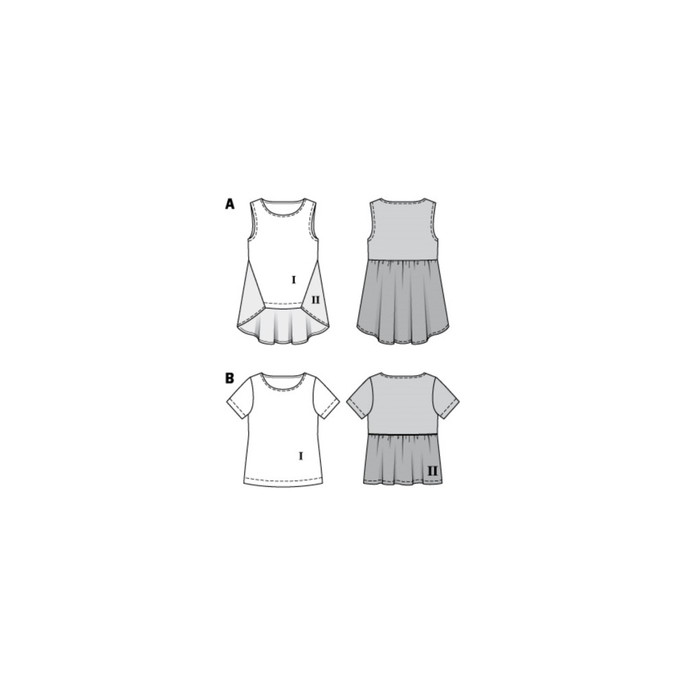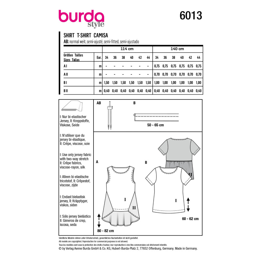 Střih Burda 6013, návod k šití: volné tričko, top s delším zadním dílem