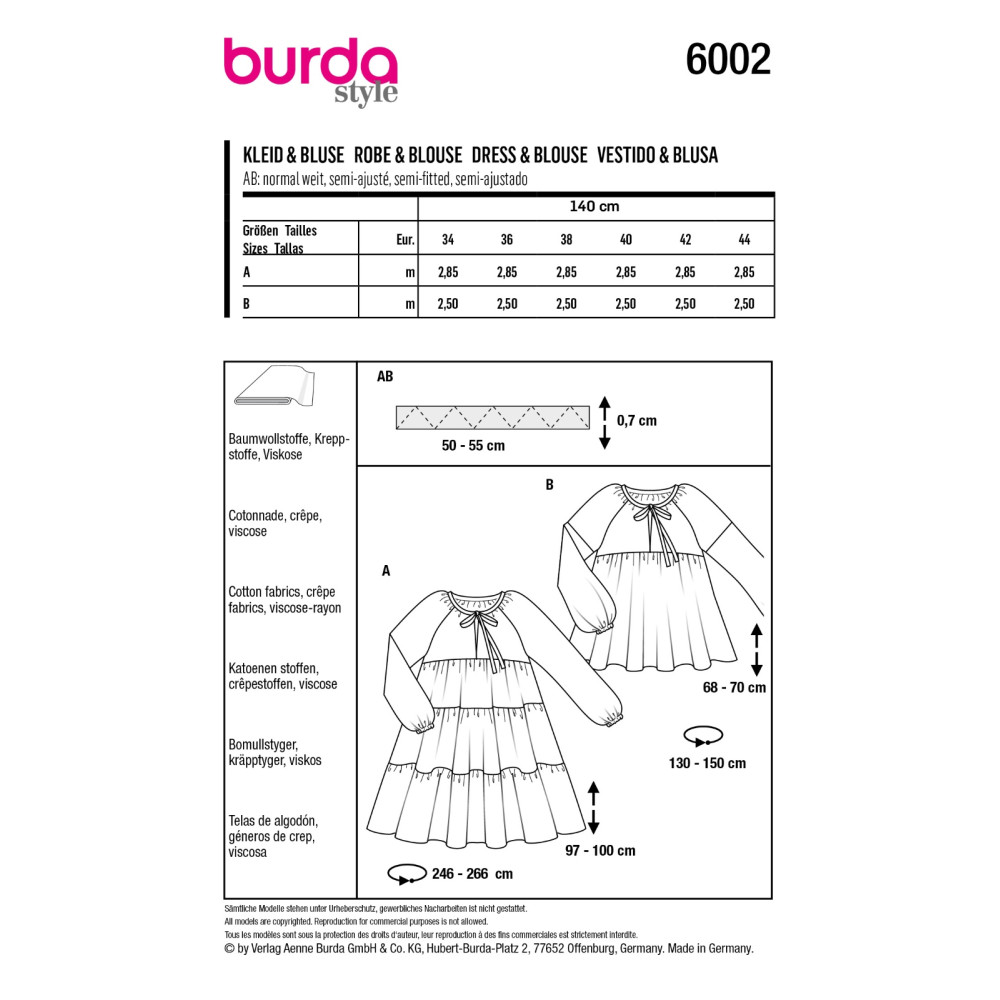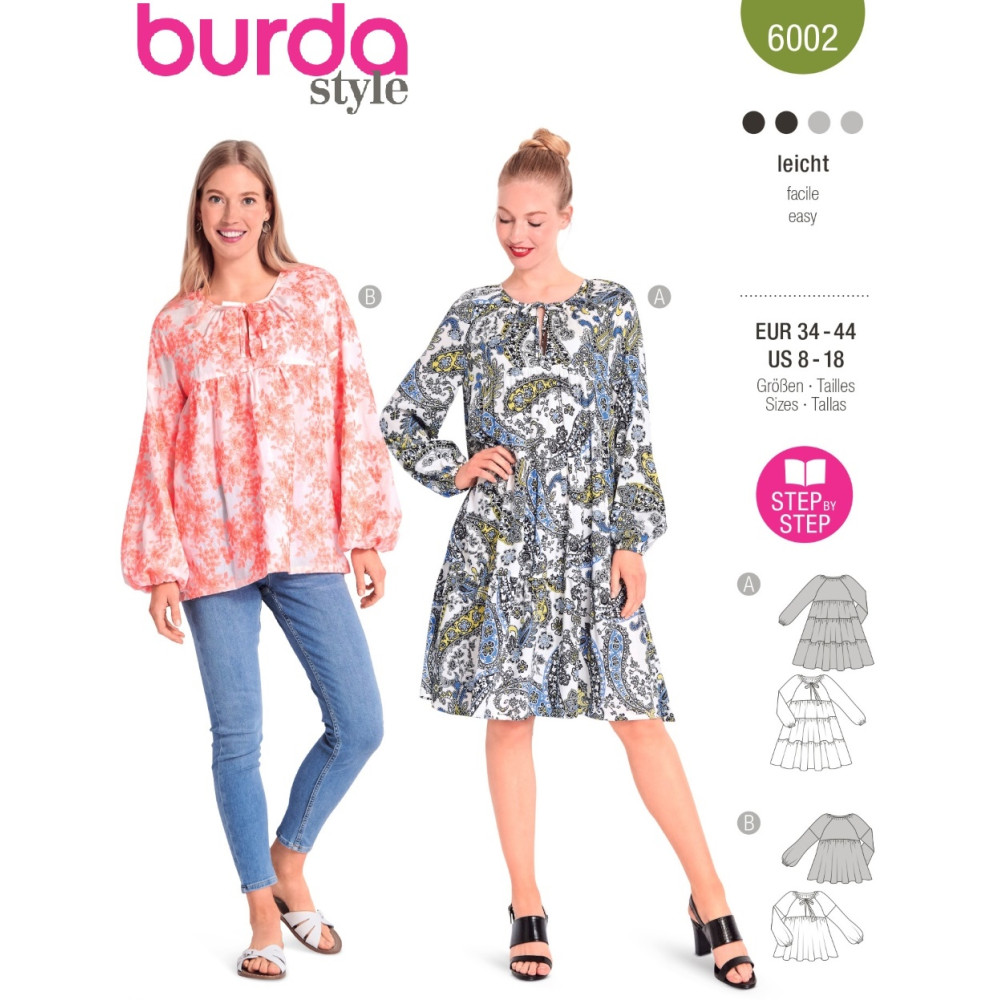 Střih Burda 6002, návod k šití: halenkové šaty, halenka