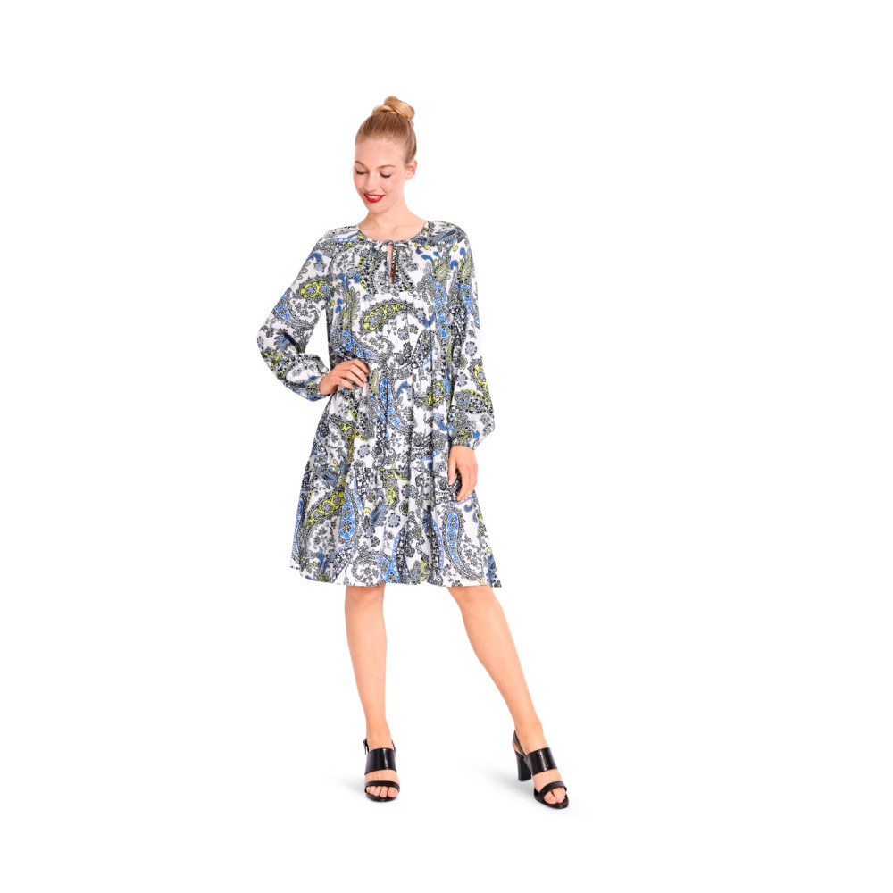 Střih ve velikostech EUR 34-44, úroveň obtížnosti šití: 2 lehká info, doporučené látky: bavlna, krepové látky, viskóza