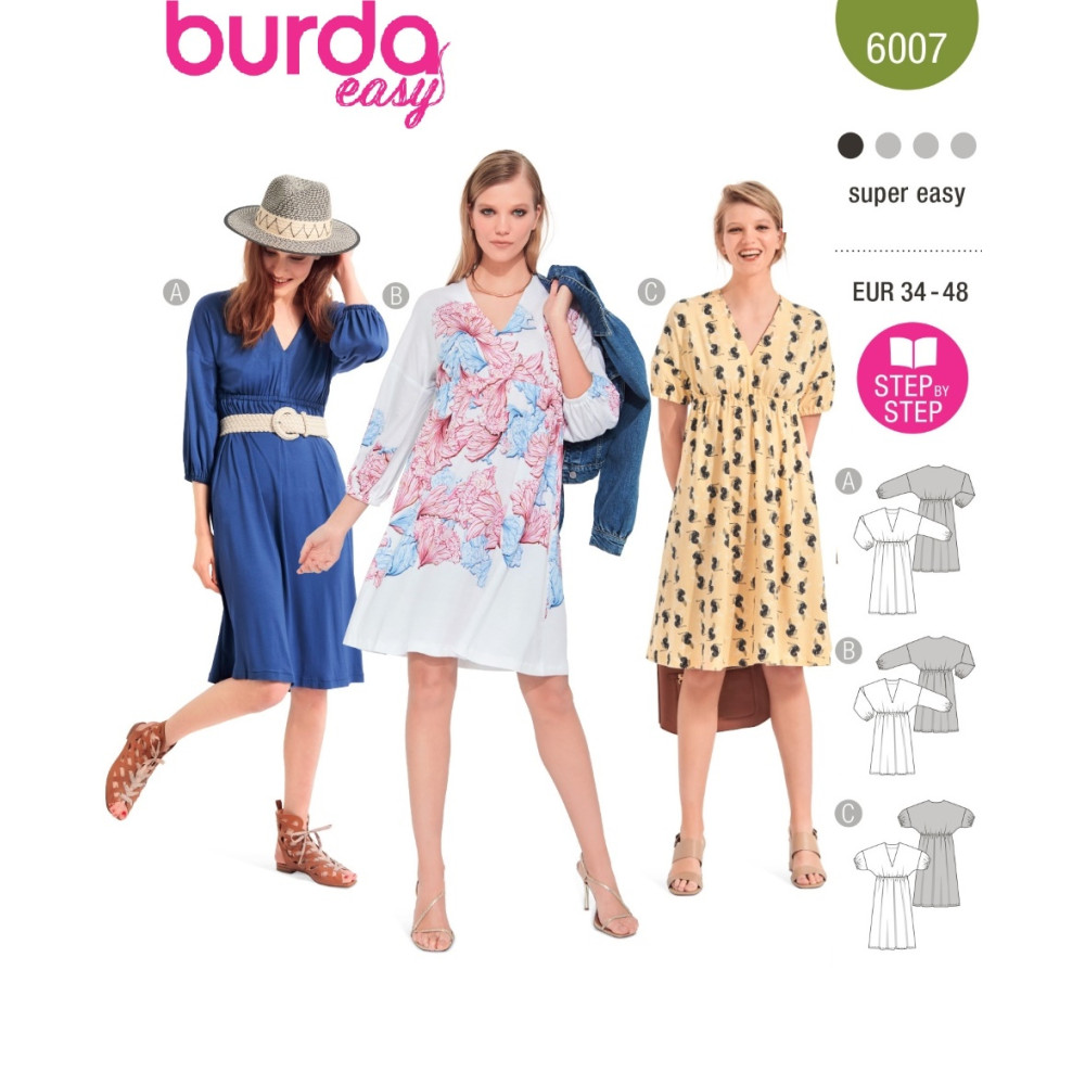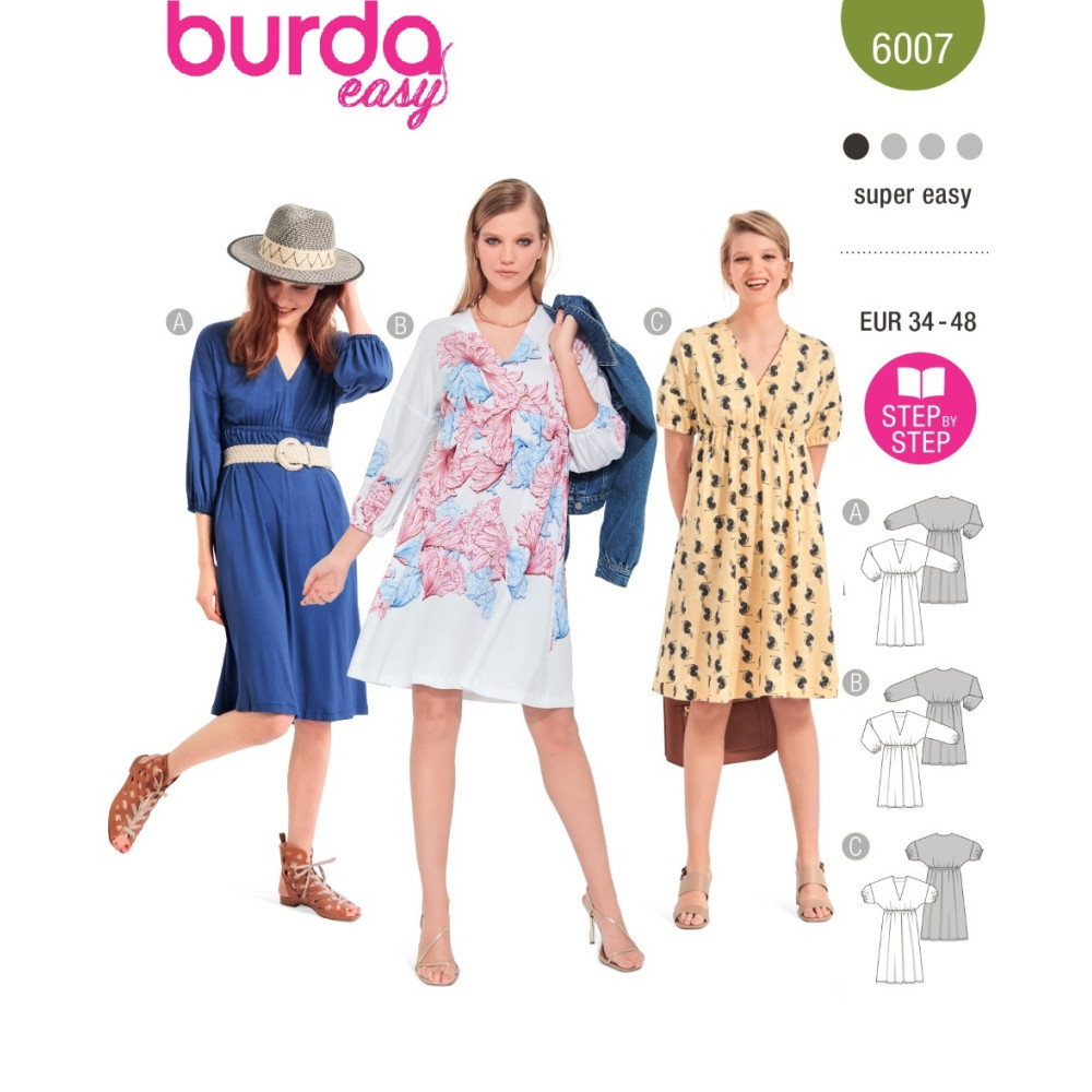 Střih Burda 6007, návod k šití: vzdušné šaty s gumičkou pod prsy