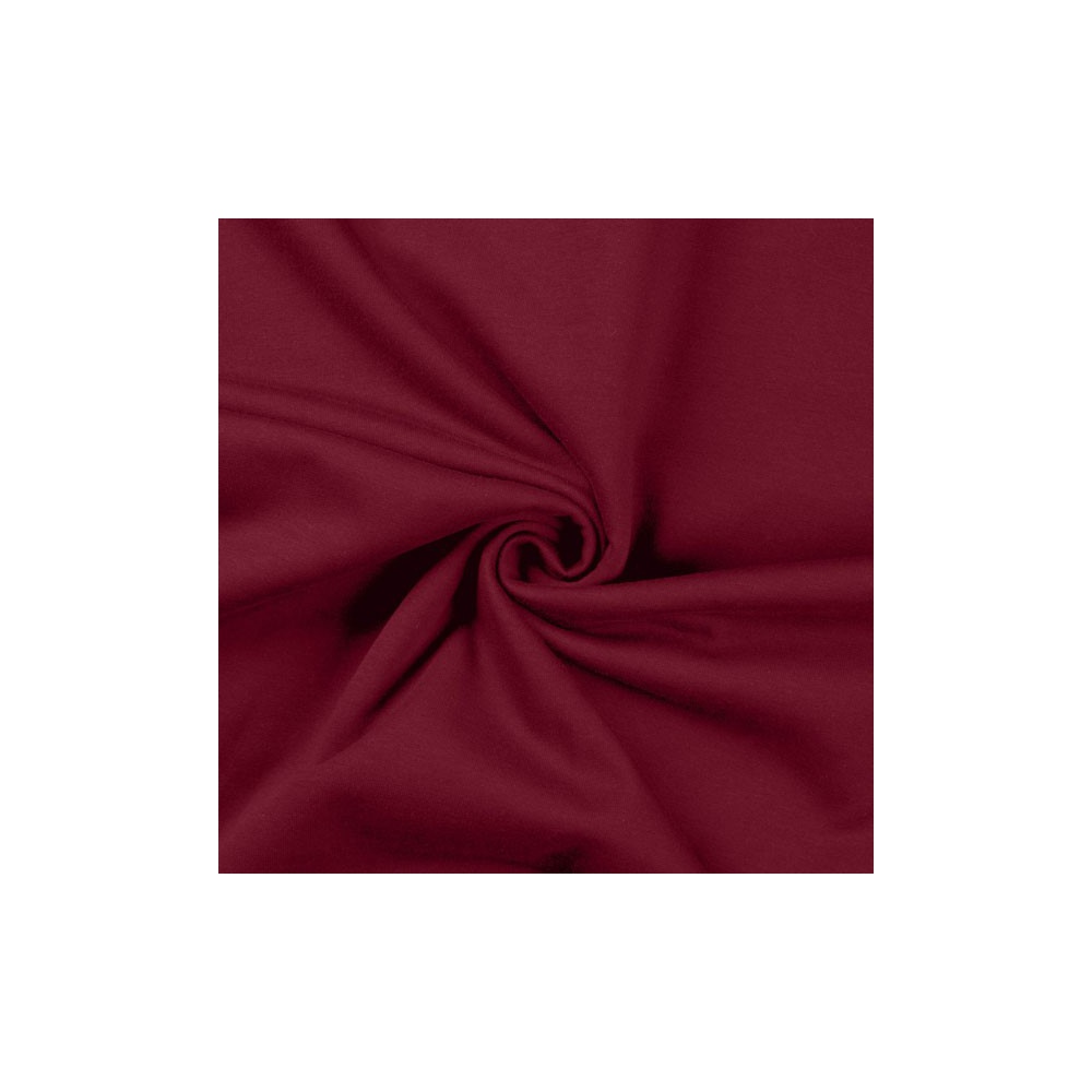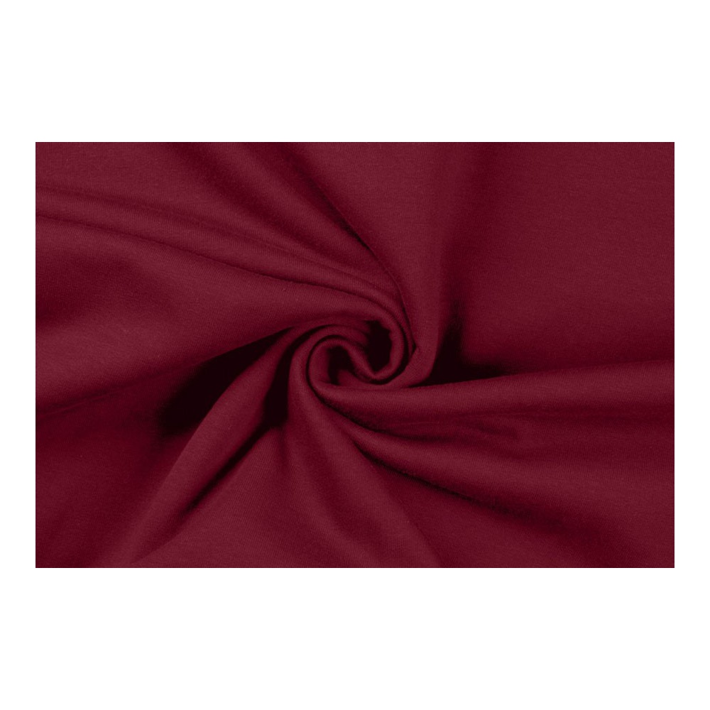 Počesaná teplákovina, vínová. Úplet je příjemný na omak i nošení. Složení látky 96% bavlna, 4% elastan. Šířka teplákoviny 150 cm. Gramáž 245g/m2. Teplákovina je vhodná na vesty, mikiny, tepláky, dětské oblečení.