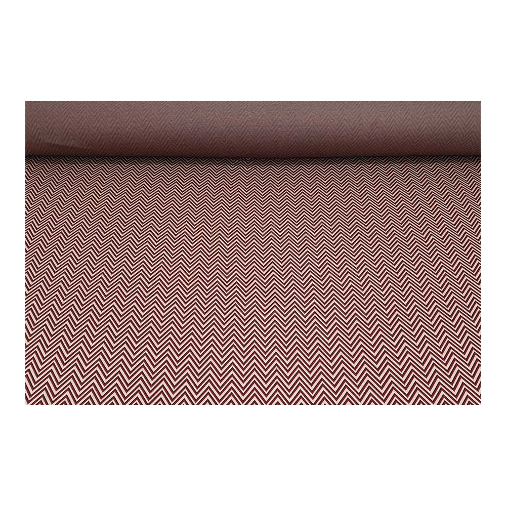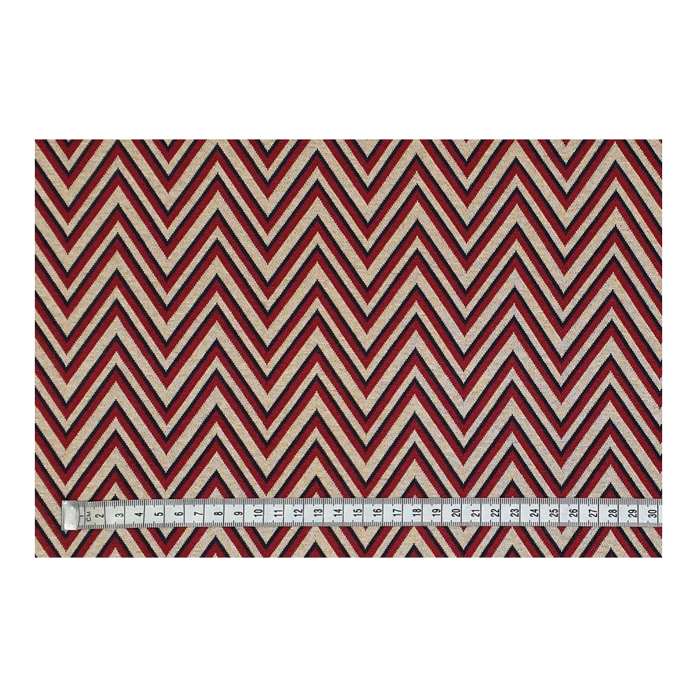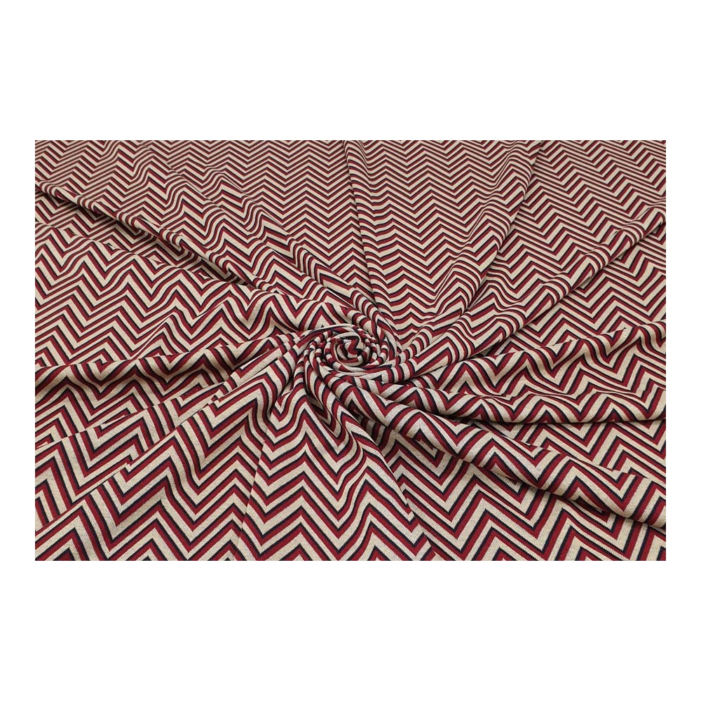 Vzorovaný úplet, béžovo-vínovo-modrý cik cak. Složení pleteniny 93 % viskóza, 5 % polyester, 2% elastan. Látka má šířku 160 cm. Pletenina je příjemná na omak i nošení. Úplety jsou vhodné na trika, sukně, šaty, mikiny.