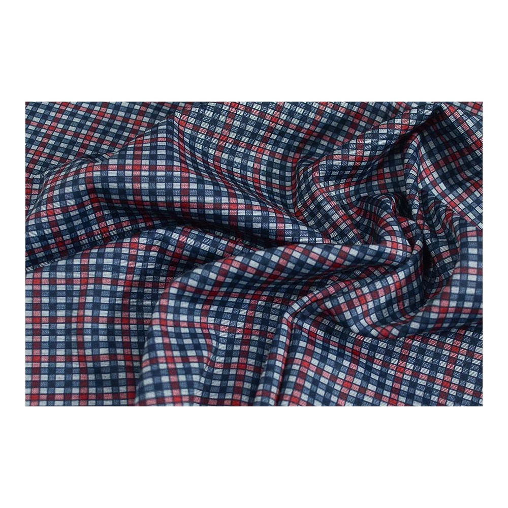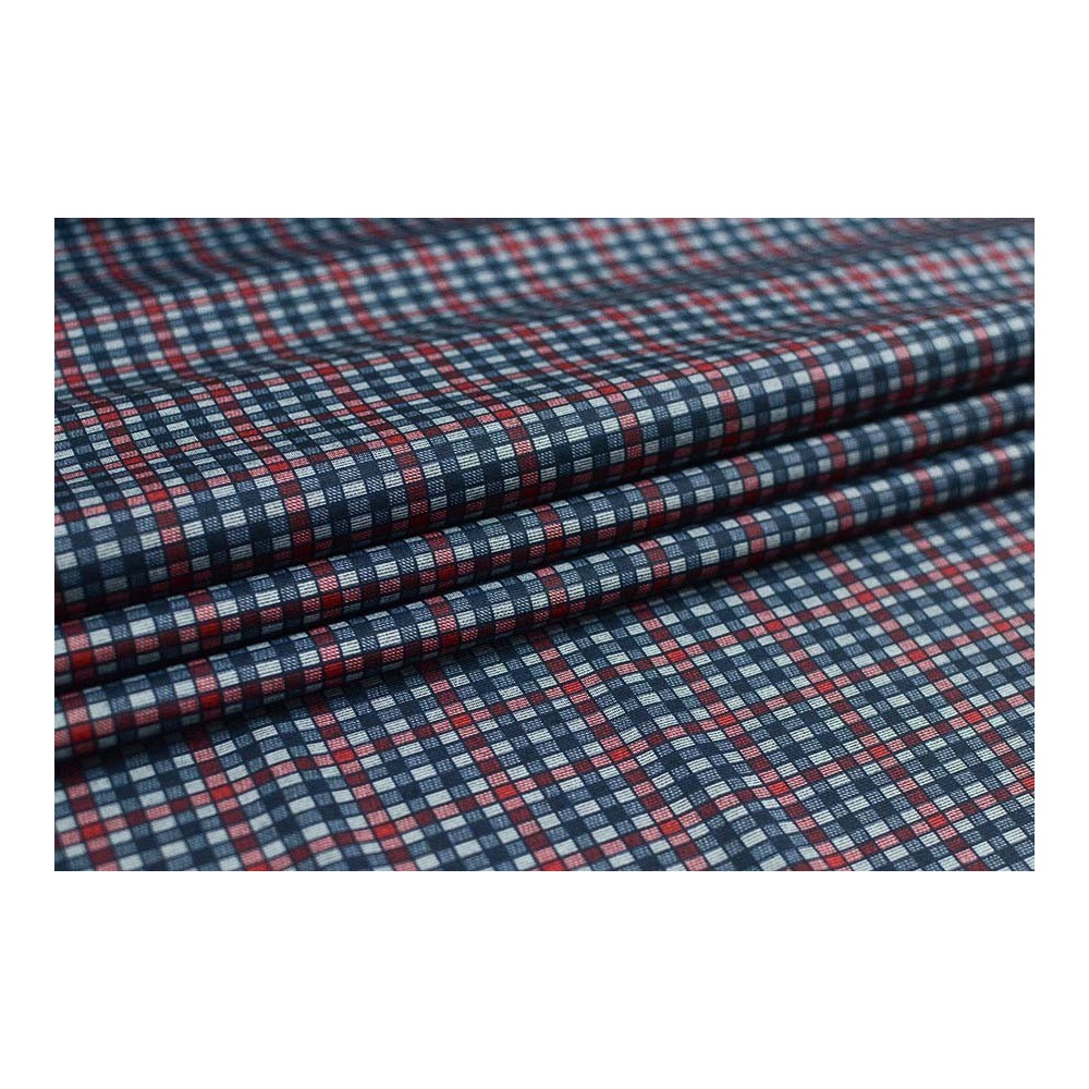Úplet PUNTO šedé, modro-červená drobná kostička, š.145
